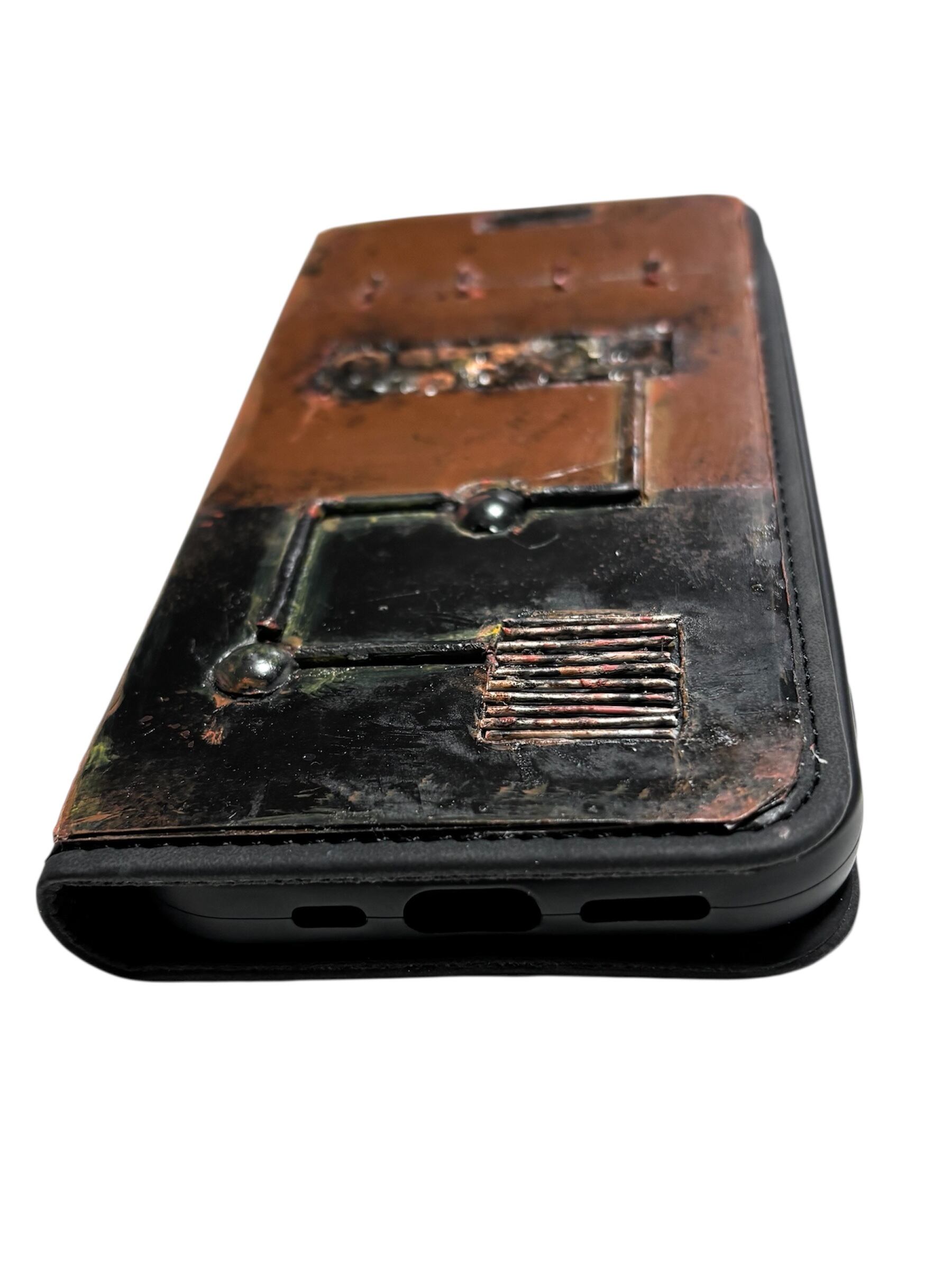 スチームパンクスペースギアBBさび塗装強化プレート手帳型ハンドメイドスマホケース