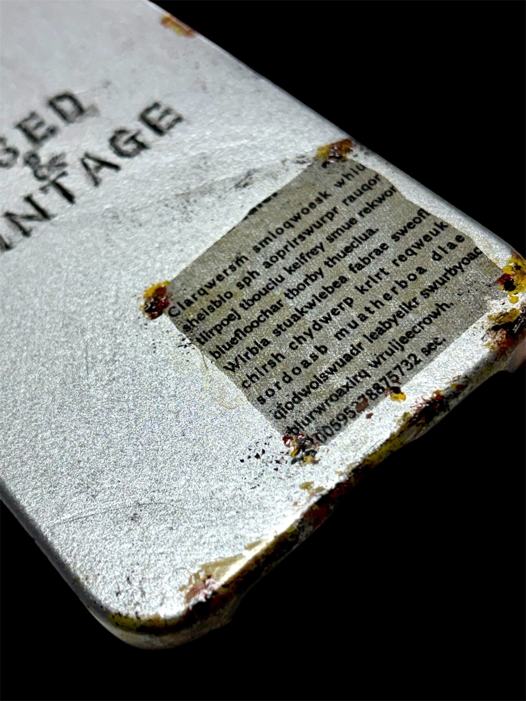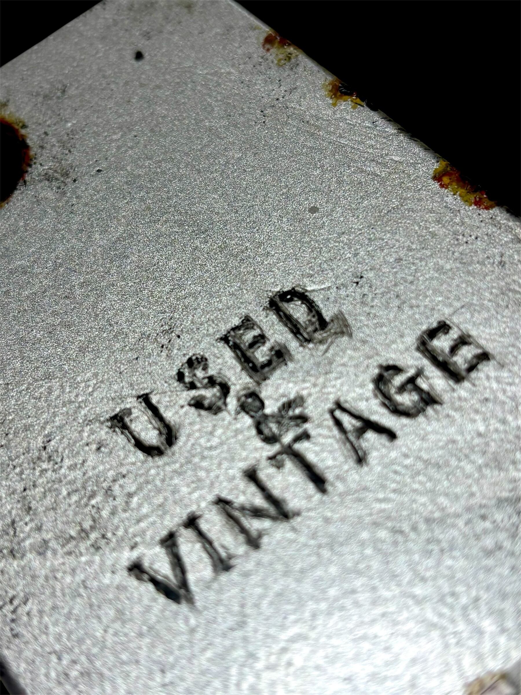 エイジング、サビ塗装を施し、さらに文字加工