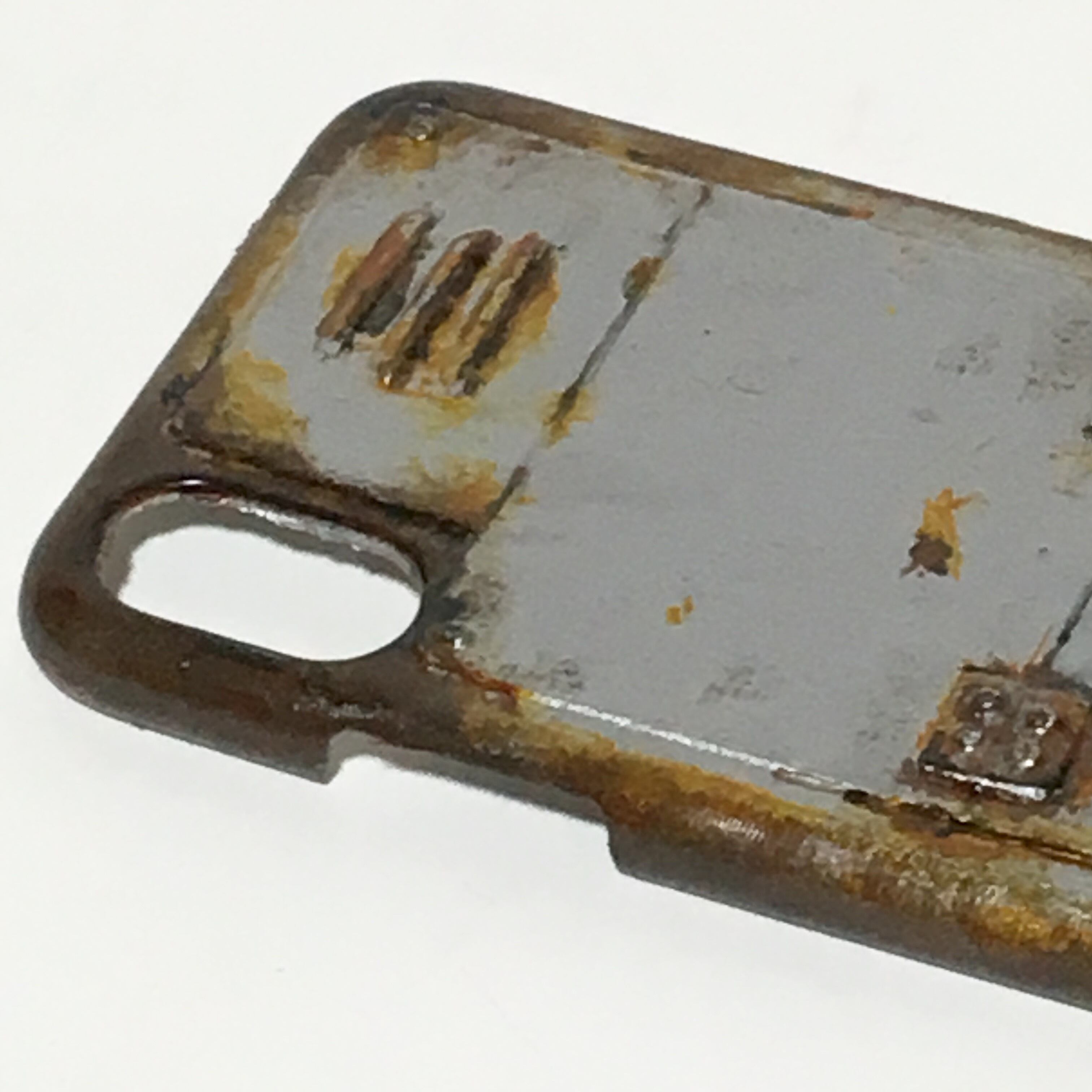 市販のiPhoneケースに、プラ板でデザインをおこしワイヤー、ビスなどでリアルなダクトを表現しましました。