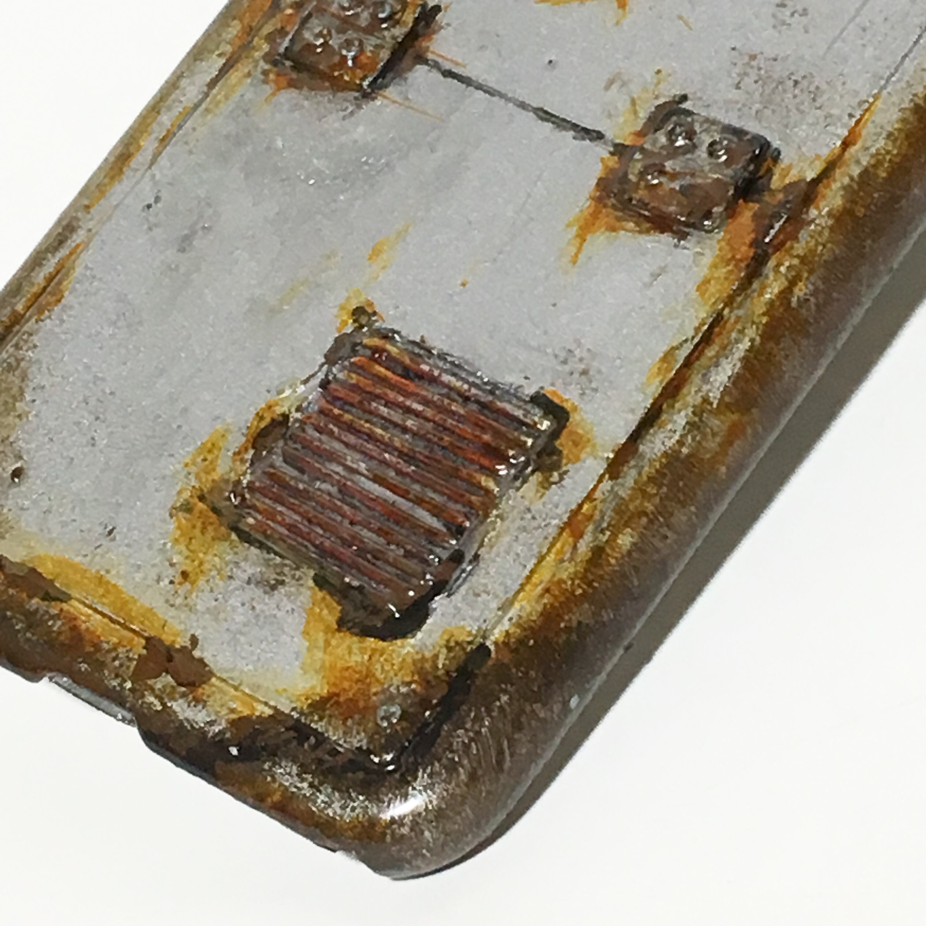 形成後、下地処理しエイジング、サビ塗装を施し、
