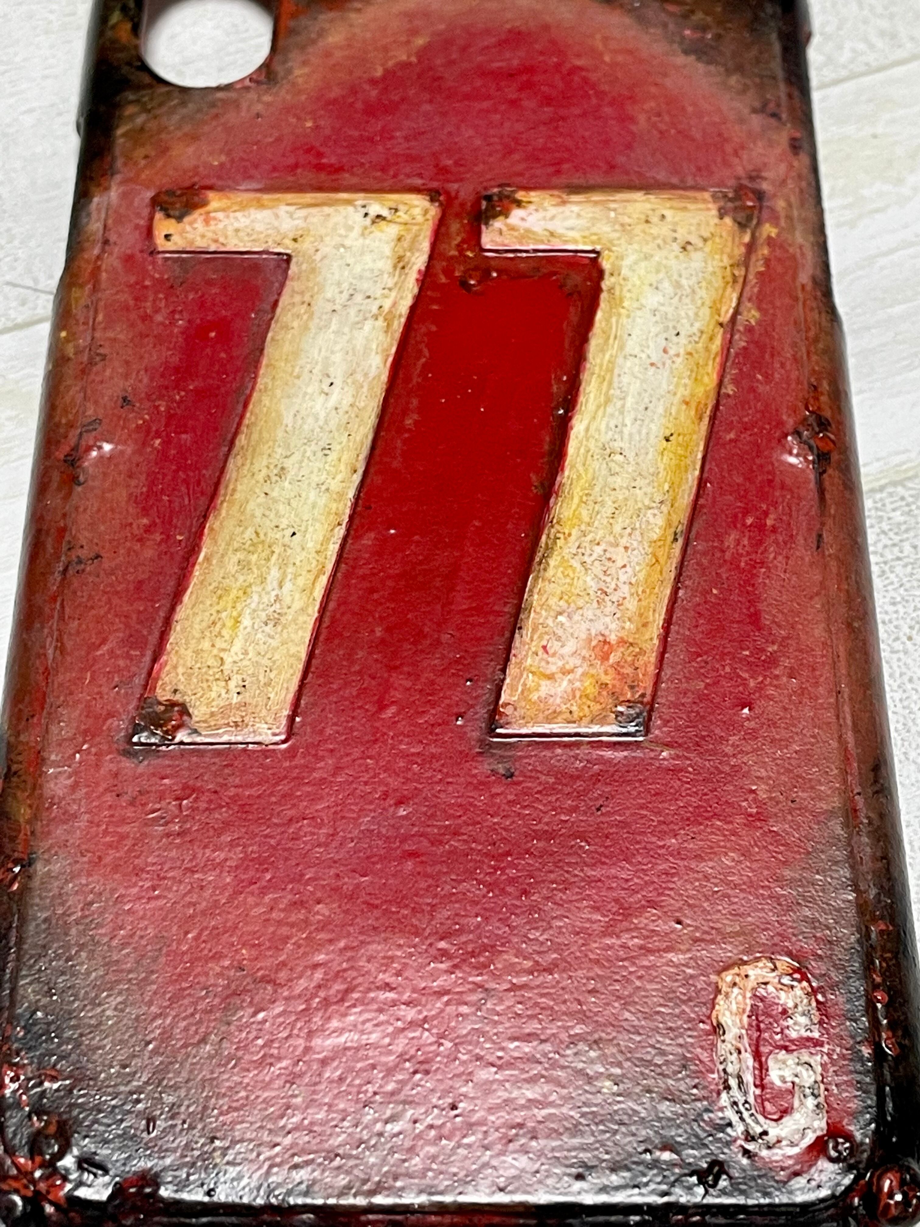 数字の77のプレートを貼り付け大変オリジナルデザイン。