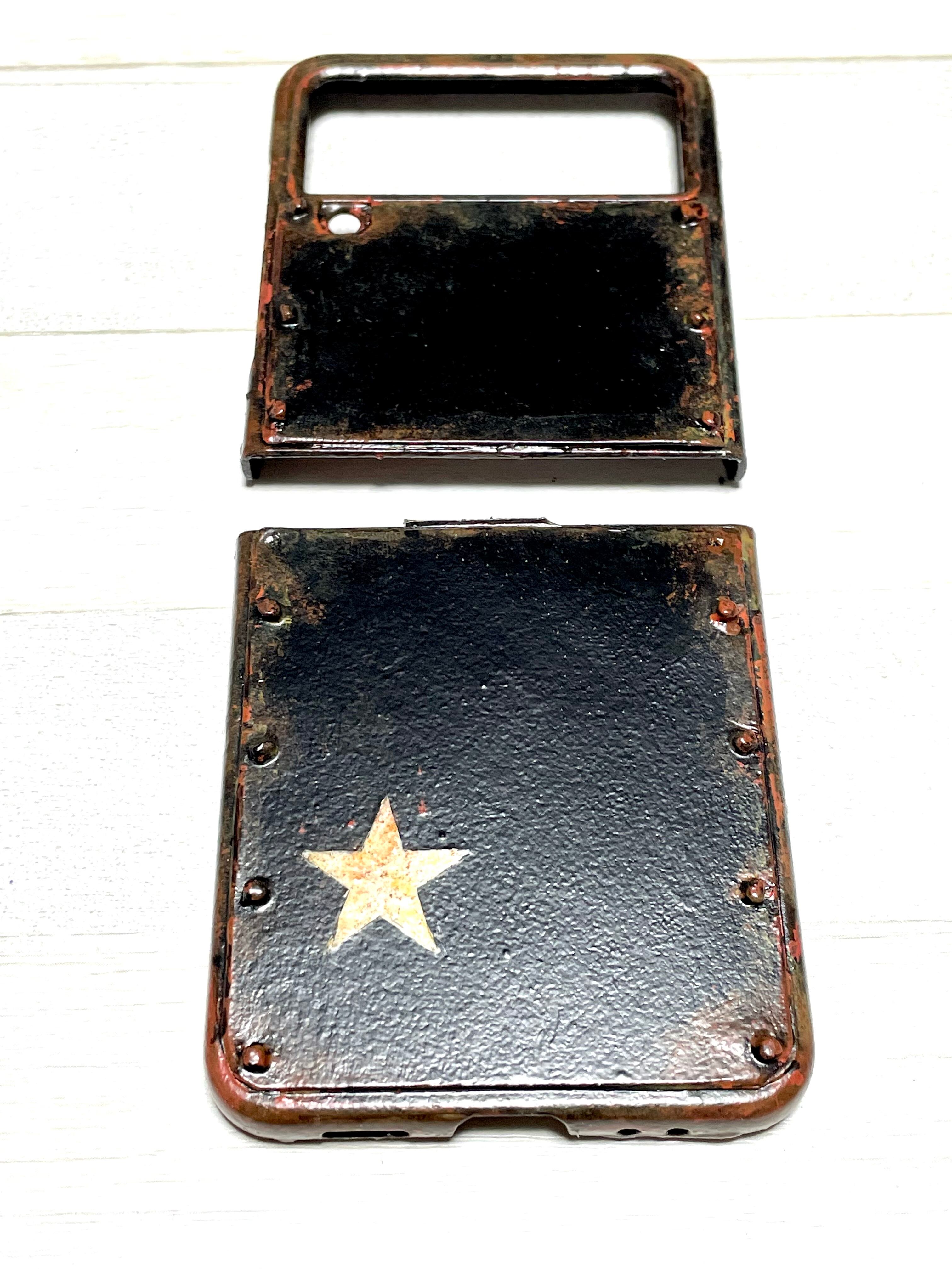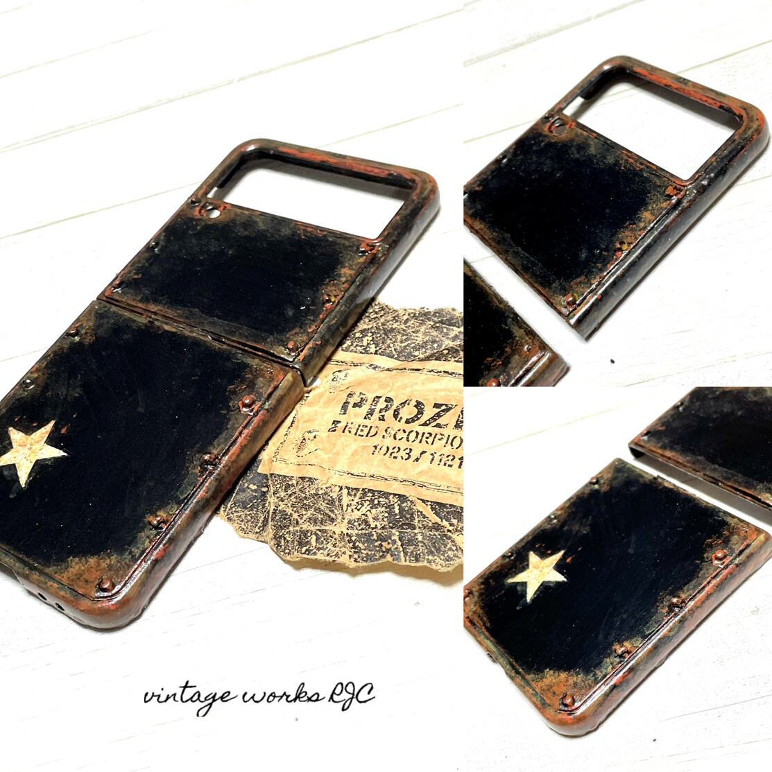 サビ塗装がかっこいいダークパンクな雰囲気の、ハンドメイドで作られたスマホケースです。
