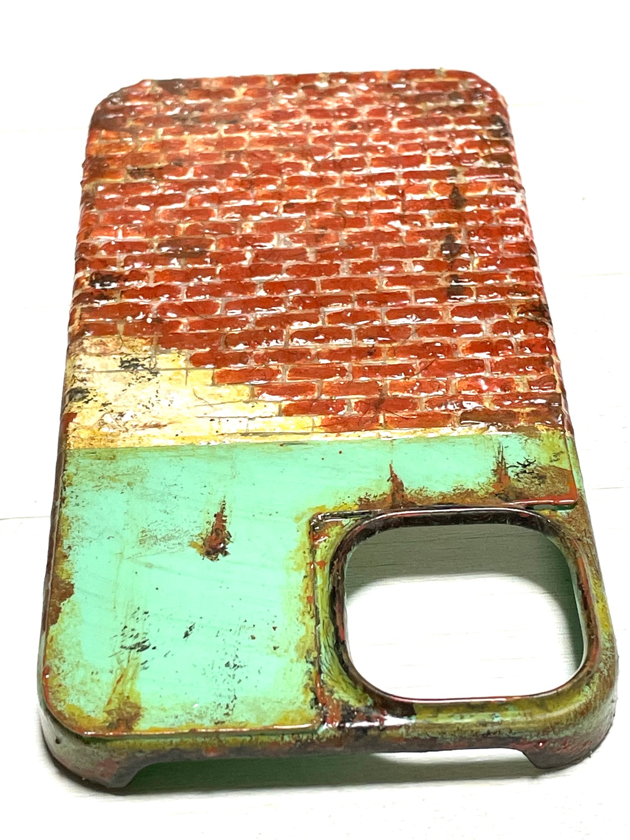 その後、エイジングとサビ塗装を三層ハンドメイドペイントしたスマホケースです。