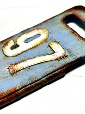 このケースは、ビンテージ風のブルーとサビ塗装が施され、数字プレートを貼り付けています。個性的なスタイルで、他のケースとは一線を画します。